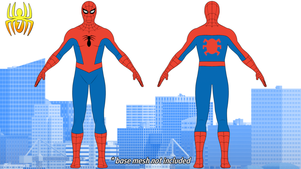 You'll get: PNG texture files for 4 suits and 2 web shooters as well as new lenses for Lair Male Base