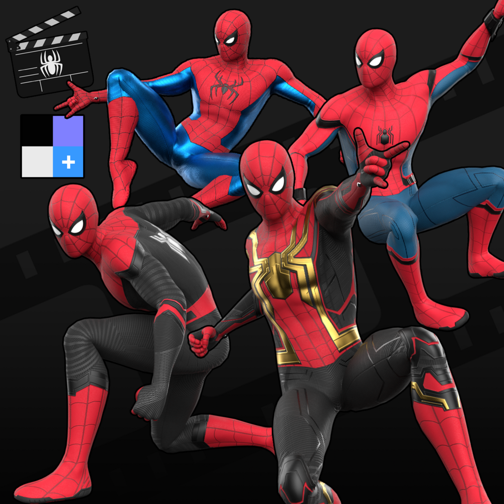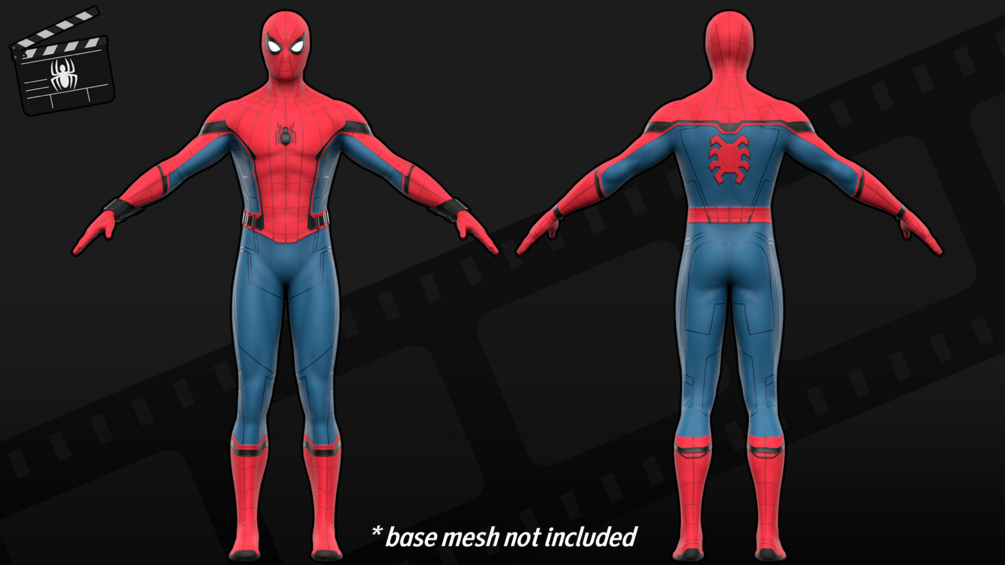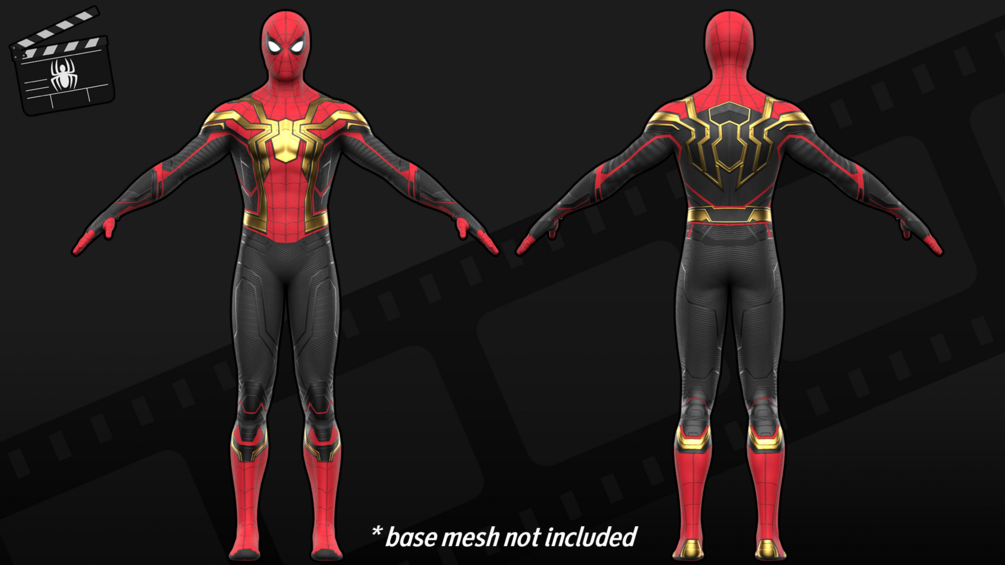 You'll get: PNG texture files for 4 suits and 2 web shooters as well as new lenses for Lair Male Base